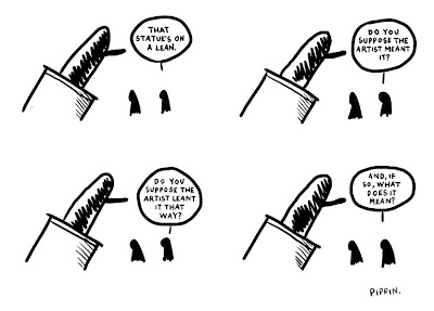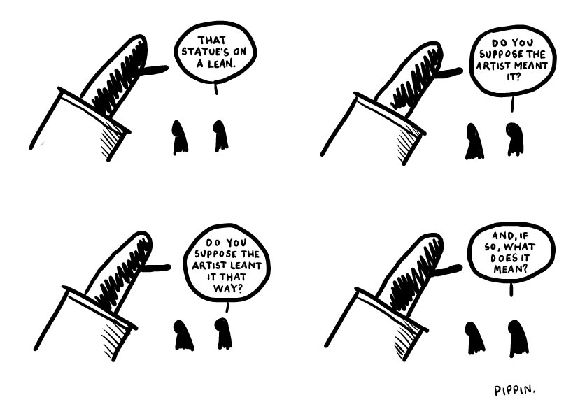 We saw a great poem about a leaning sculpture on inininoutoutout a while back and said if it was ever drawn up into a comic we would love to publish it here. It was and, as you can see, we have.